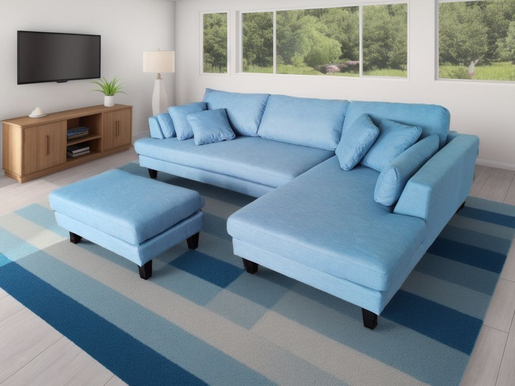 S168RNE 3pc. Contemporary 2 Skype Blue Linen Fabric Sectional Sofa Chaise Ottoman (Removable covers)